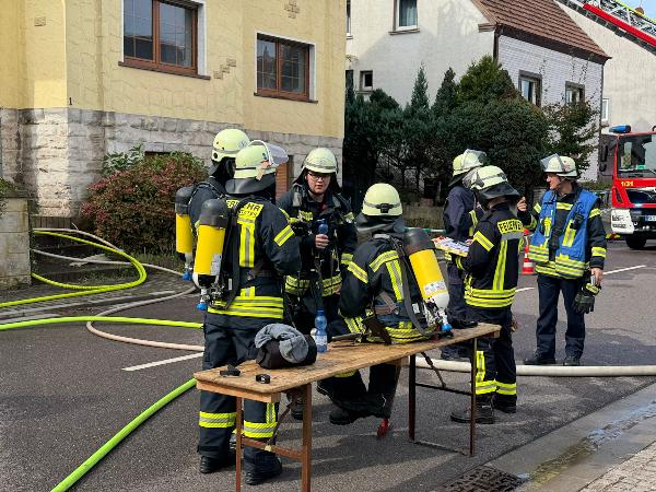 Die Einsatzkräfte machen sich sofort auf die Suche nach Menschen in dem brennenden Zweifamilienhaus. Zum Glück konnte sich der anwesende Bewohner selbständig vor Eintreffen der Rettungskräfte aus dem Gebäude retten und hinter dem Anwesen angetroffen werden. Er wurde vom Rettungsdienst auf Rauchgasvergiftungen untersucht und zur weiteren Behandlung in ein Krankenhaus gebracht. Weitere Personen befanden sich zum Zeitpunkt des Brandausbruches nicht im Gebäude.