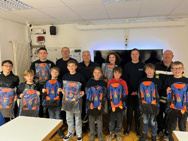 Löschbezirksführer Heino Molter lobte in seiner Ansprache das Engagement der jungen Feuerwehrleute und dankte den Jugendwarten für Ihre hervorragende Arbeit. Die Jugendwarte erhielten von der Löschbezirksführung ein kleines Präsent als Dank für das Engagement in der Jugendarbeit. Im Anschluss an die Rede von Heino Molter überreichten die Jugendwarte als Weihnachtsgeschenke sehr schöne Jugendfeuerwehr-Rucksäcke an die Jugendfeuerwehr.