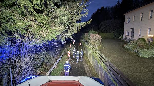 Gegen 16:42 Uhr wurde der Löschbezirk Habach alarmiert. In der Verlängerung der Straße "Zum Steinhaus" war ein Baum über einen Weg gestürzt, den die Feuerwehr beseitigen musste.