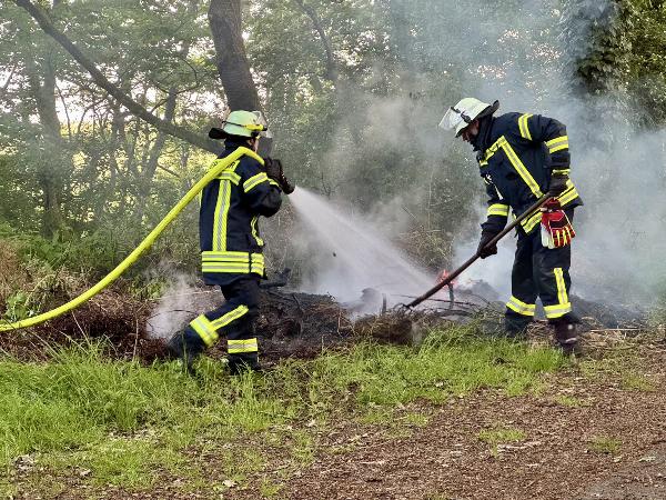 Die Einsatzkräfte aus dem Löschbezirk Dirmingen, für die es bereits der zweite Einsatz an diesem Tag war, fanden im Wald einen Haufen trockenen Grünschnitt vor, der aus bisher unbekannter Ursache in Brand geraten war. Mit eine C-Rohr und der Löschwasservorrat aus dem Löschfahrzeug konnte der Brand schnell gelöscht werden. Ein Übergreifen des Feuers auf die umstehenden Bäume konnte verhindert werden.