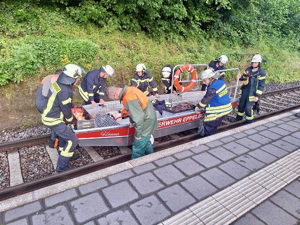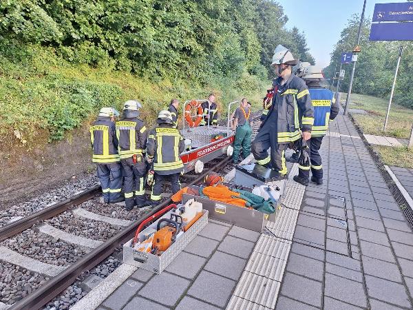 | Eingesetzte Fahrzeuge: | Notfallmanager Bahn (), KdoW Wehrführer (03), MTW (2-18), HLF 10 (2-45) |