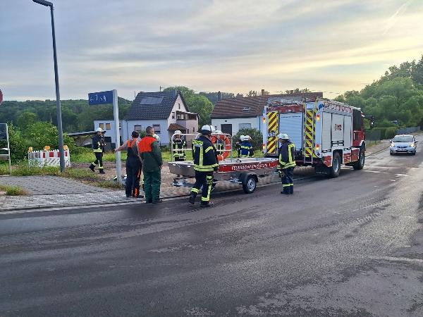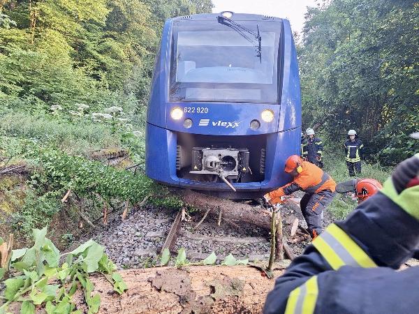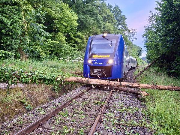 Vor Ort begannen die Einsatzkräfte unverzüglich mit der Beseitigung der beiden umgestürzten Bäume. Mithilfe von Motorkettensägen wurden die Stämme und Äste zerkleinert und vom Gleisbereich geräumt. Nach Abschluss der Arbeiten übergab die Feuerwehr die Einsatzstelle an den Notfallmanager der Bahn, der die Strecke nach einer letzten Kontrolle wieder freigeben konnte.