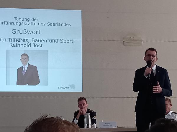 Sehr bewegend waren die Worte von Innenminister Reinhold Jost. In seiner Ansprache erwähnte er der die spürbare Zunahme von Gewaltaktionen gegen Behörden und Organisationen mit Sicherheitsaufgaben, die vor zwei Wochen mit einer schrecklichen Straftat gegen einen Polizeikollegen einen traurigen Höhepunkt fand. Er betonte, dass die Landesregierung Gewalt gegen die „Blaulichtfamilie“ nicht toleriert. Wer diejenigen angreift, die Sicherheit für die Gesellschaft schaffen, ob ehrenamtlich oder hauptamtlich, werden mit allen Mitteln des Rechtsstaates verfolgt werden.