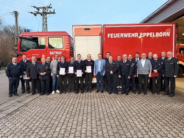 Jonathan Scherer wurde zum Oberfeuerwehrmann, Steffen Klesen zum Hauptfeuerwehrmann, Tobias Becker zum Löschmeister, Erwin Saar zum Hauptlöschmeister ernannt. Den Löschbezirksführer Jochen Couturier konnte der Bürgermeister zum Oberbrandmeister befördern. Christian Horras erhielt seine Bestellungsurkunde zum Gerätewart, Markus Braun die zum Gemeindefunkbeauftragten der Feuerwehr Eppelborn.