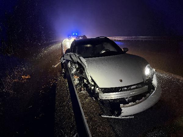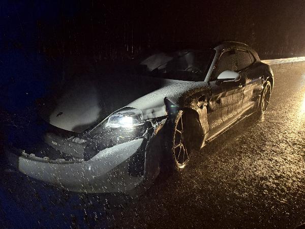 Ein Porsche Taycan GTS war verunfallt. Über das im Fahrzeug integrierte eCall-Notrufsystem wurde automatisch ein Notruf ausgelöst. Der männliche Fahrer teilte dabei mit, dass er in seinem Fahrzeug eingeschlossen sei und dies nicht verlassen könne.