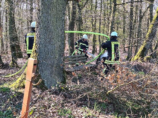 Vor Ort stellte sich heraus, dass neben einer Ruhebank ein Baumstumpf brannte.
