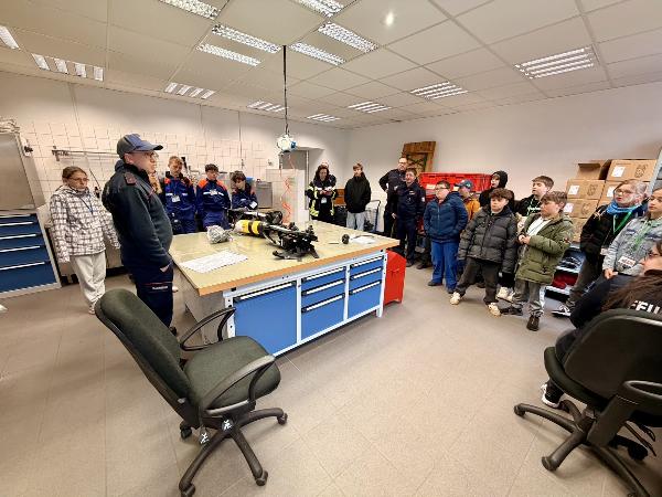 Neben den Fahrzeugen konnten die Jugendlichen auch einen Blick hinter die Kulissen werfen: So wurden ihnen die Schlauchwaschanlage sowie die Atemschutzwerkstatt vorgestellt. Hier erfuhren sie, wie wichtig Pflege, Wartung und Prüfung der Ausrüstung für die Sicherheit im Einsatz sind.