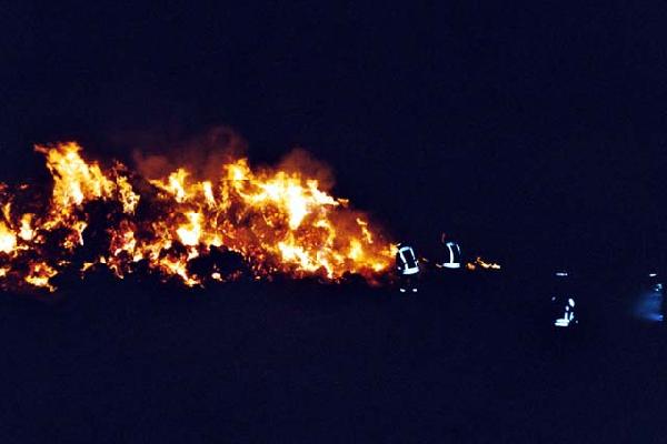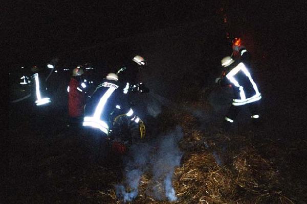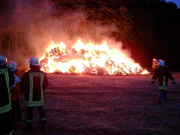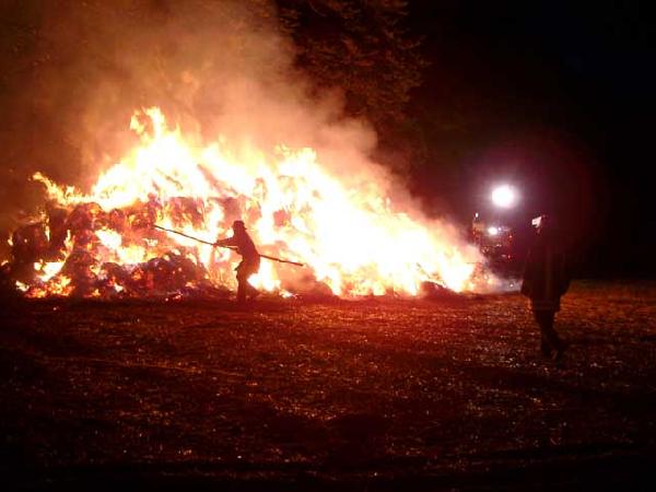 Ein kontrolliertes Abbrennenlassen des Strohlagers war durch die Lage direkt am Waldrand nicht möglich. Daher wurden die Flammen zuerst niedergeschlagen und das Stroh dann mit Traktoren auseinandergezogen und die Flammen abgelöscht.