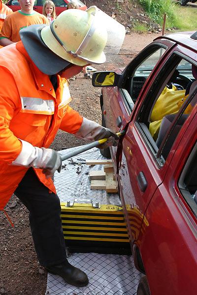 So wurde gezeigt, wie Scheiben herausgetrennt werden oder mit welchen einfachen Mitteln wie Brecheisen oder Blechaufreißer oftmals ein Zugang geschaffen werden kann. Auch auf das Vermeiden von unnötigen Erschütterungen und Lärm wurde hingewiesen.