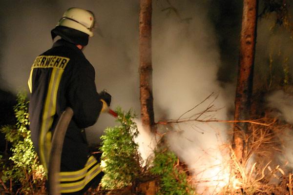 Die Einsatzkräfte aus dem Löschbezirk Wiesbach waren bereits kurz nach der Alarmierung vor Ort und konnten ein Ausbreiten der Flammen verhindern. Nach gut einer halben Stunde waren die letzten Glutnester gefunden und abgelöscht. Ein größerer Schaden konnte durch das schnelle Eingreifen vermieden werden, lediglich einige Fichten wurden in Mitleidenschaft gezogen.