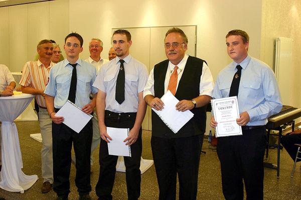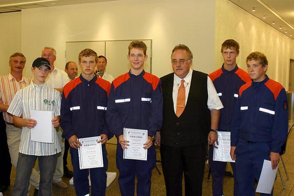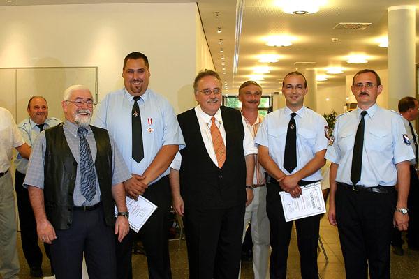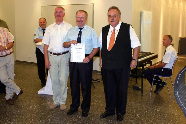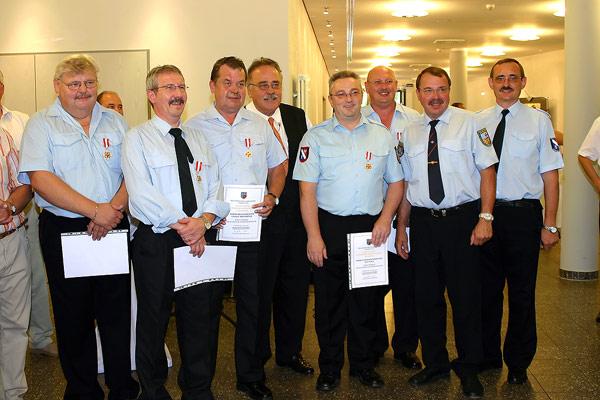 Kreisbrandinspekteur Günter Sticher, der auch zu dieser Veranstaltung gekommen war, zeichnete außerdem im Namen des Landrates weitere 22 Feuerwehrleute aus: Das silberne Ehrenzeichen für 25 Jahre aktiven Dienst erhielten Joachim Kunz, Marino Trenz, Rainer Weber, Stefan Persch, Wolfgang Pink, Stefan Holz, Rainer Wagner, Rainer Becker und Stefan Morbe. Das goldene Ehrenzeichen für 35 Jahre aktiven Dienst erhielten Erich Daub, Günter Hoffmann, Willi König, Peter Bethscheider, Arnold Laub, Peter Saar, Karl Paul, Manfred Stein, Michael Egler, Gerhard Hellbrück, Joachim Bastuck, Günter Klesen und der stellvertretende Wehrführer Klaus Theis.