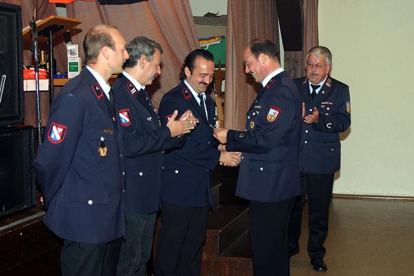 Doch für allen anderen begann der Familienabend wie geplant mit der musikalischen Eröffnung durch den Fanfarenzug. In einer kurzen Ansprache dankte Löschbezirksführer Felix Becker den Feuerwehrmännern für die vielen Stunden ehrenamtlicher Arbeit. Und auch Bürgermeister Lutz sprach den Feuerwehrmännern und -frauen seinen Dank aus. Er nutzte die Gelegenheit, um Ehrungen für langverdiente Feuerwehrmitglieder auszusprechen. Markus Leidinger, Reinhard Fuchs erhielten eine Auszeichnung für 20 Jahre aktiven Dienst, Stefan Holz für 25 Jahre und Günter Hoffmann, Arnold Laub, Peter Saar, Michael Egler und Günter Klesen sogar für 35 Jahre.