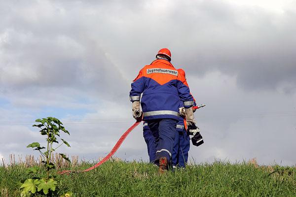Pünktlich um 16 Uhr konnten dann die Kids in einer gemischten Gruppe von Dirmingen und Ottweiler eine Schauübung mit dem Löschfahrzeug LF 8 von Dirmingen durchführen. Mit Martinshorn und Blaulicht rückten die Jugendfeuerwehrleute aus und zeigten den zusammengelaufenen Besuchern ihr Können. Innerhalb kurzer Zeit wurde ein kompletter Löschangriff aufgebaut und der Angriffstruppführer konnte "1. Rohr Wasser Marsch" geben. Die interessierten Besucher waren begeistert von der Arbeit der Jugendfeuerwehr.