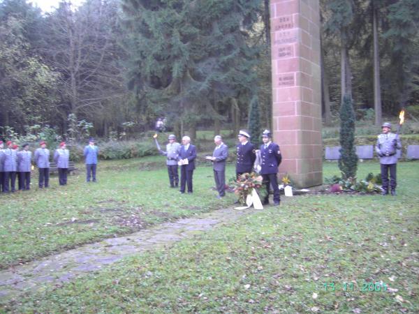 Paul Hoffmann, vom Heimat-und Verkehrsverein Dirmingen, bedankte sich bei allen Teilnehmern der Gedenkstunde. Im Anschluß an die Feierlichkeit traf man sich noch im Gasthaus Schuhannesse zu einem kleinen, gemeinsamen Umtrunk.