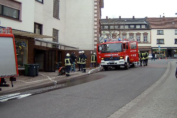 Bereits kurz nach der Alarmierung war die Feuerwehr mit drei Einsatzfahrzeugen vor Ort, um den vermeintlichen Brand zu bekämpfen. Nachdem der verschlossene Zugang zu den Kellerräumen aufgebrochen war, gingen zwei Einsatzkräfte mit Atemschutzgeräten auf die Suche nach der Ursache der starken Rauchentwicklung.