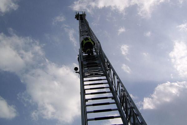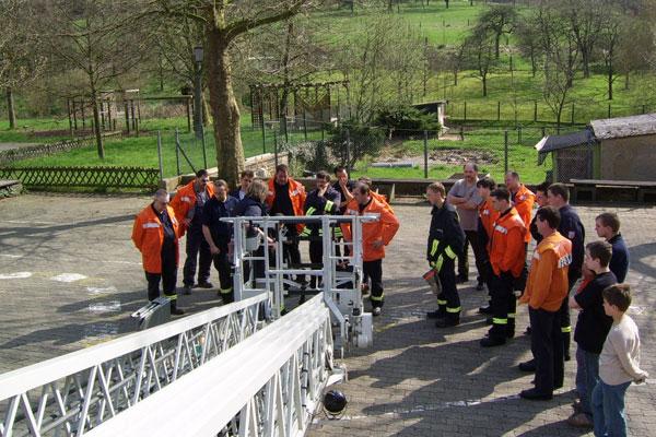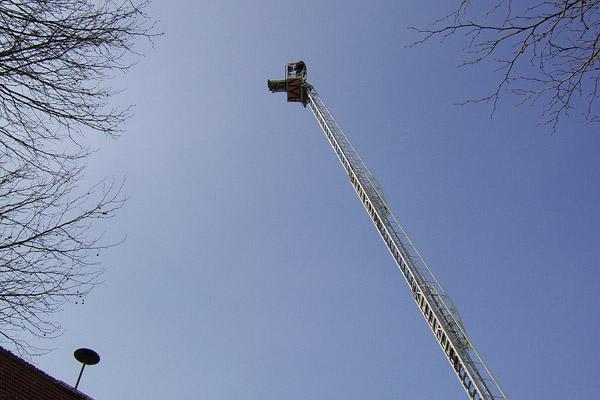 Ziel der Übung war es, die Besonderheiten der Drehleiter im Einsatz sowie ihre Möglichkeiten kennenzulernen. Denn schon beim Aufstellen der Fahrzeuge ist das von Bedeutung: Durch die notwendige Abstützung und den Leiterpark braucht dieses Rettungsgeräte ausreichend Platz an einer Einsatzstelle. Trotzdem muss immer ausreichend Platz für weitere an- und abrückende Einsatzfahrzeuge bleiben.