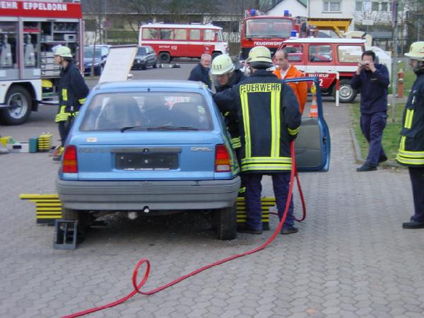 Da der Unterstützungslöschbezirk für den Löschbezirk Eppelborn (gerade auch im Hinblick auf schwere Verkehrsunfälle auf der Autobahn) der Löschbezirk Bubach-Calmesweiler ist, wurde wieder eine gemeinsame Übung in Bubach-Calmesweiler durchgeführt. Übungsthema war das "patientengerechte Retten nach Verkehrsunfällen". In der zweistündigen Übung wurde das Konzept Schritt für Schritt vorgestellt und an dem bereitgestellten Fahrzeug umgesetzt.