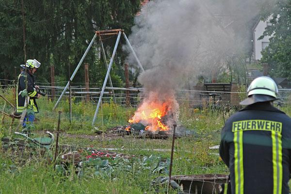 Nachdem Anrufer die Rauchentwicklung über den Notruf 112 der Polizei gemeldet hatten, wurden die Männer und Frauen des Löschbezirks Bubach-Calmesweiler gegen 20.45 Uhr alarmiert. Am Einsatzort angekommen, löschten die Einsatzkräfte das Feuer und übergaben die Einsatzstelle an die Polizei. Der Einsatz war für die Feuerwehr gegen 21.00 Uhr beendet.