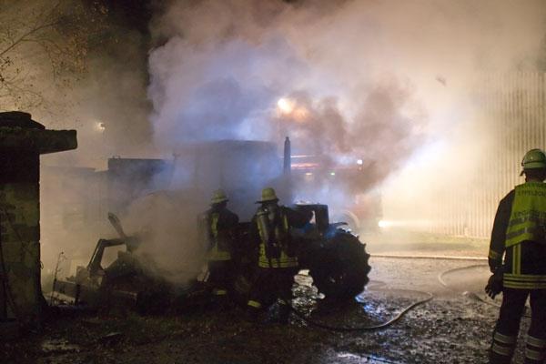 Glück im Unglück: Der Traktor, so der Eigentümer, steht normalerweise in einer Scheune, in der auch mehrere hundert Rundballen gelagert werden. Nicht auszudenken, wäre es hier zu einem Brand gekommen.