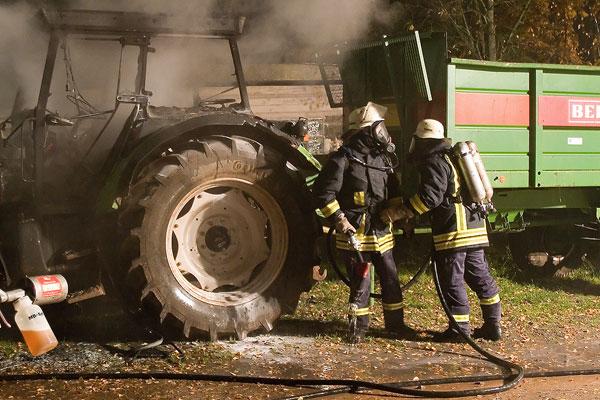 An dem Traktor entstand durch das Feuer erheblicher Sachschaden, die Brandursache ist zum jetzigen Zeitpunkt ungeklärt. Die Polizei war ebenfalls im Einsatz und hat die Ermittlungen zur genauen Brandursache aufgenommen.