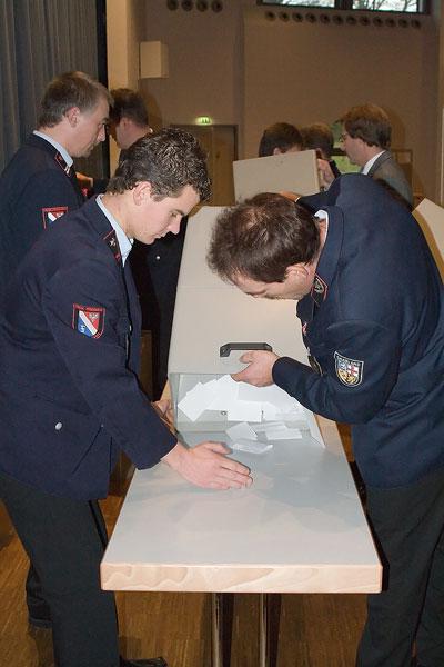 Gleich drei Kandidaten wurden für das Amt des Wehrführers von der Versammlung vorgeschlagen. Doch der amtierende Amtsinhaber Hermann Josef Recktenwald konnte sich mit 113 Stimmen gegen die Mitbewerber Engelbert Ruschel aus Habach und Stefan Blum aus Dirmingen bereits im ersten Wahlgang behaupten.