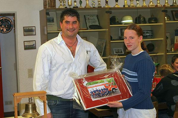 Eine personelle Änderung gab es bei der Jugendfeuerwehr: Der bisherige Jugendbetreuer Werner Ruschel schied auf eigenen Wunsch nach 12 Jahren Jugendarbeit aus dem Amt des Jugendbetreuers aus. Seine Nachfolge tritt sein Stellvertreter Markus Leidinger an. Löschbezirksführer Becker dankte dem Jugendwart für seine Arbeit und überreichte im Namen der Mannschaft ein Abschiedsgeschenk.