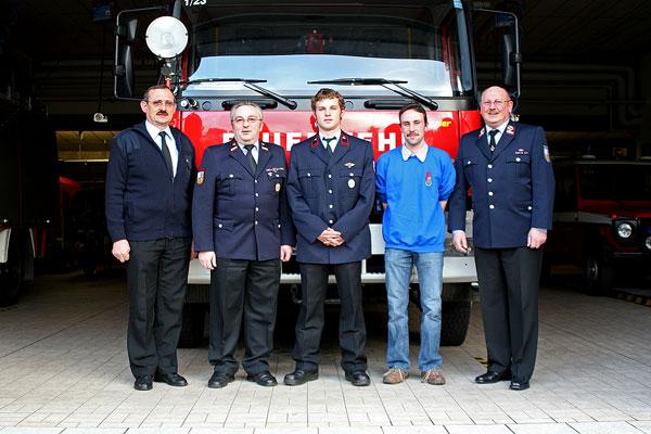 Wehrführer Hermann Josef Recktenwald, sein Stellvertreter Klaus Theiss sowie der stellvertretende Kreisbeauftrage der Jugendfeuerwehr Jan Rumetsch gratulierten dem neu gewählten Gemeindejugendgruppensprecher und wünschten eine weiterhin gute Zusammenarbeit für die kommende zwei Jahre.