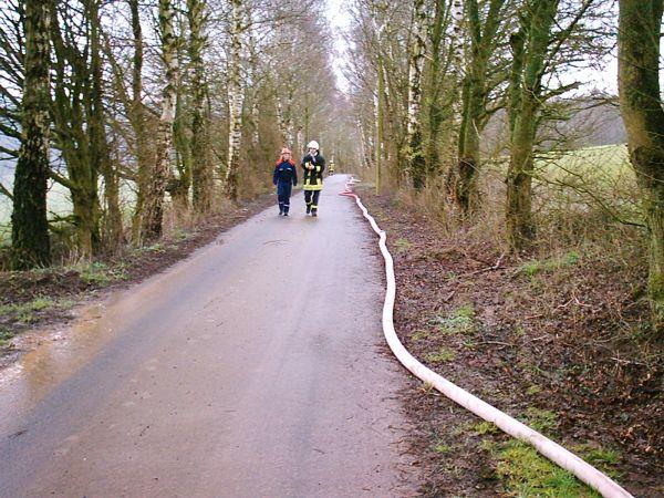 Da gleich klar war, dass das Ausmaß des Brandes alleine nicht unter Kontrolle zu bringen war, wurde der Löschbezirk Dirmingen alarmiert. Dieser unterstützte nach Ankunft an der Einsatzstelle den Löschbezirk Berschweiler in der Menschenrettung und Brandbekämpfung und errichtete eine Wasserversorgung aus dem etwa 350 m entfernten Löschteich des Hofes.