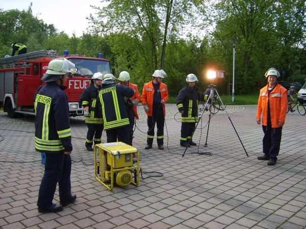 Markus Lambert machte mit den interessierten Wehrleuten noch eine komplette Ausbildungseinheit mit dem Thema - Ausleuchten der Einsatzstelle. Er erklärte die Grundlagen und die Wehrleute konnten an den vorhanden Geräten üben und ihr erhaltenes Wissen in die Praxis umsetzen.