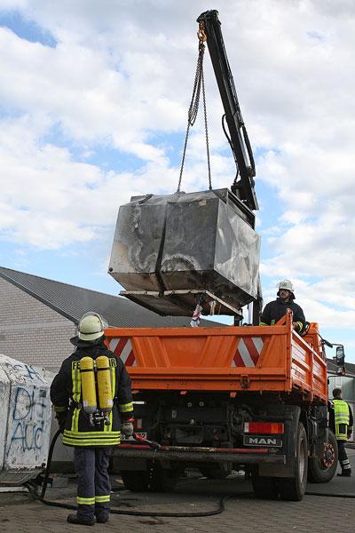 Zum endgültigen Ablöschen wurden die betroffenen Container mit Transportern zum Gemeindebauhof gebracht und dort geöffnet. Die Löscharbeiten zogen sich bis gegen 20:00 Uhr hin.
