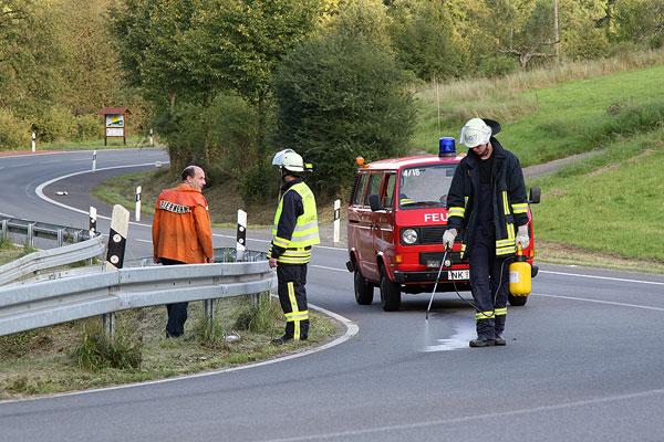 Mit Ölbindemittel wurde die Straße gereinigt und die Gefahr für die Verkehrsteilnehmer beseitigt. Der Einsatz war gegen 19:30 Uhr beendet. Der Verursacher konnte von der Polizei ermittelt werden
