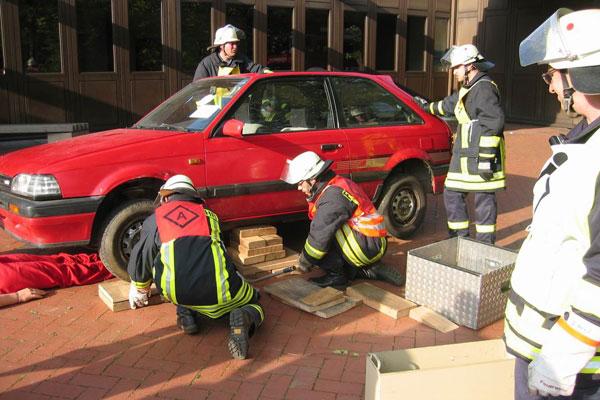 Die Feuerwehrleute aus Bubach-Calmesweiler mussten zusätzlich eine Aufgabe aus dem Bereich der technischen Hilfeleistung bewältigen: Eine Person musste unter einem Fahrzeug gerettet werden.