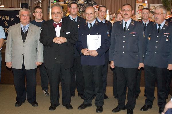 Ortsvorsteher Berthold Schmitt und Brandinspekteur Werner Thom dankten den Wehrleuten für ihr Engagement in der Feuerwehr. "Auf Ihre Feuerwehr können sie sich verlassen" versprach der Brandinspekteur dem Bürgermeister.