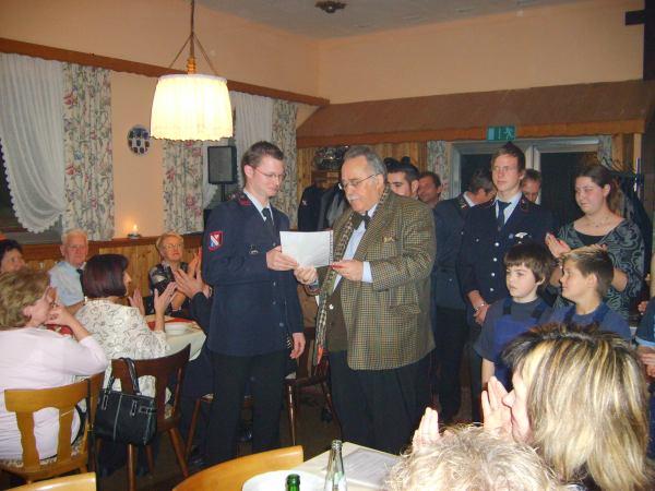 Löschbezirksführer Bernd Detzler konnte im weiteren noch verschiedene interne Ehrungen vornehmen und beendete den offiziellen Teil des Abends. Mit Beendigung seiner Rede war auch der Startschuß für ein schmackhaftes Essen gefallen.