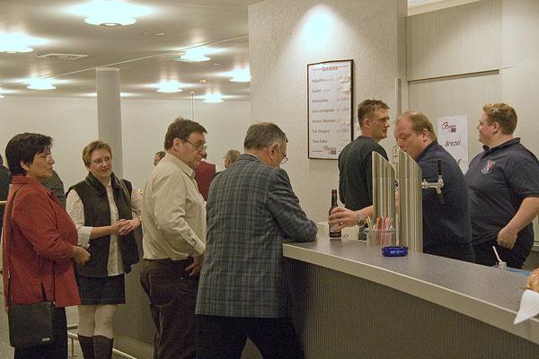 Auch Mitglieder des Löschbezirks Eppelborn waren wie schon bei vergleichbaren Veranstaltungen in den Jahren zuvor tatkräftig im Einsatz. Sie übernahmen das Getränkebuffet im Foyer, den Garderobendienst und den CD-Verkauf nach der Veranstaltung.